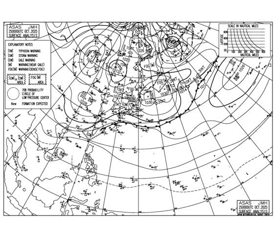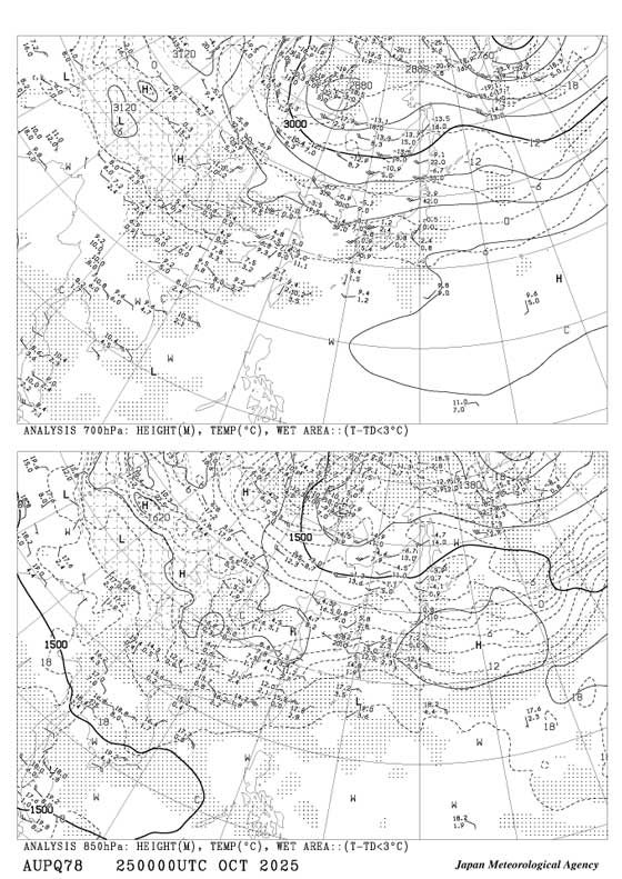 2025年10月25日 午前9時 850,700hPa高層天気図