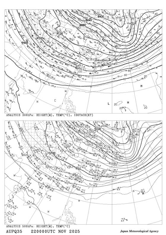2025年11月22日 午前9時 500,300hPa高層天気図