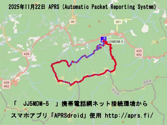 「 JJ5MDM-5 」携帯電話網ネット接続環境からスマホアプリ「APRSdroid」使用。