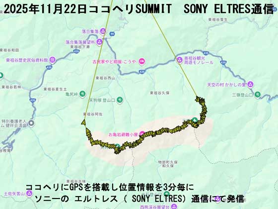 ■ココヘリにGPSを搭載し位置情報を3分毎に ソニーの エルトレス( SONY ELTRES)通信にて発信 (電池残量減だと12分間隔に)