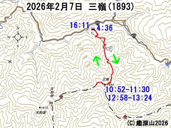 HOME > 山行記録 >三嶺(1893) > 2026年2月7日