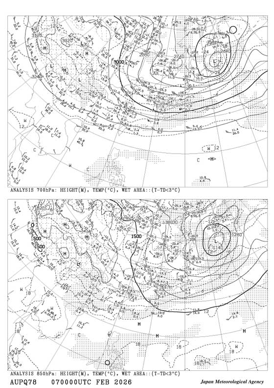 2026年2月7日 午前9時 850,700hPa高層天気図