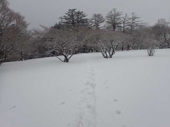 標高1740m位で風の吹き抜けるところは きれいな雪原になっている。