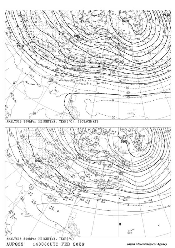 2026年2月14日 午前9時 500,300hPa高層天気図