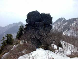 積雪期 落合峠 矢筈山(1849) サガリハゲ(1740)(2002年2月9日の記録)