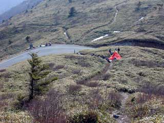 落合峠では テントが張ってあった。