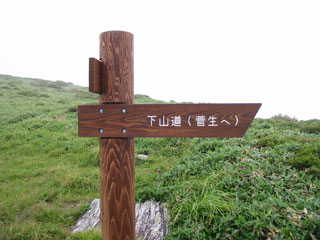13:50天狗塚 山頂 「静かな山頂だ 気温17度 風は1m 弱い。すっかりガスの中 池の水も少なくなってきている。」