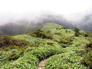 台風のせいか 夏の暑さを避けたのか 縦走路は 静かであった。 天狗塚から 三嶺までで 出会ったのは1パーティー2人のみ。