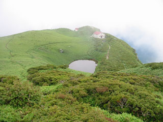 三嶺小屋付近まで降りると 少し 視界が出てきた。