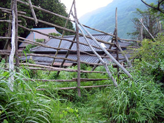 国道439号は大雨の影響などで通行止めがよくある。 奥祖谷夏祭りの時期 帰省の車や人で村は賑わう 山里の方々の道路清掃、維持補修に感謝 ガスの中から薄日がさしてきた 天狗塚山頂が見えてきた 縦走路 三嶺山頂より三嶺ヒュッテを見る 菅生への途中にある林業用小屋跡 菅生の民家裏手に降りてきた。 増水した川