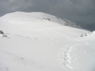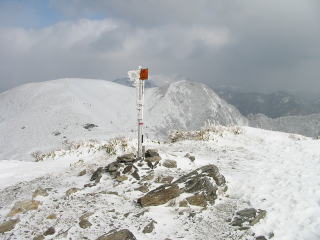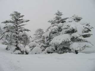 にしいや 道の駅 樹林帯 天狗塚が見える 天狗の池付近 天狗塚山頂 三嶺が見える 帰途は 雪の中 視界が悪かった。 何とか 樹林帯まで 降りてきた。 雪の重み