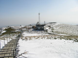 剣山山頂で 南風の 小雨 霧 プラス6度 の生暖かさ。