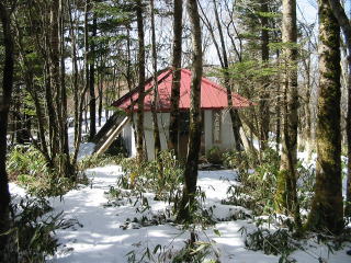 14:00 白髪避難小屋 「小屋の中で ±0度 この風では 外では 休むところもない。 つくづく シェルターの有り難みを感じる。」