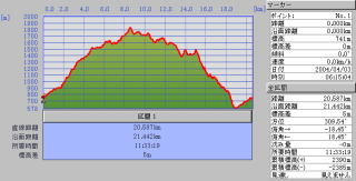 累計歩行距離 21.423km 累計標高差 2386m