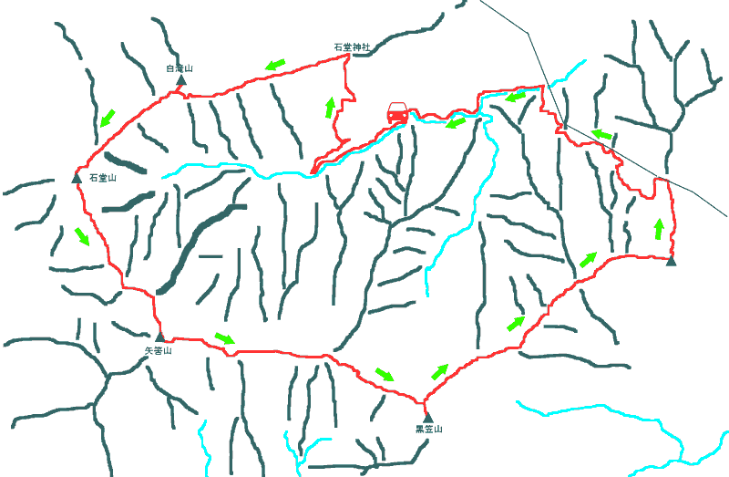白滝山(1526) 石堂山(1636) 矢筈山(1848) 黒笠山(1700) 津志嶽(1494)