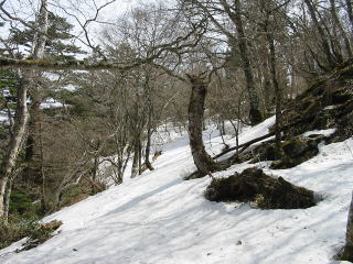 縦走路北側に捲く所など まだしっかり残雪がある。