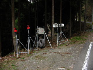 ● 崩壊箇所の少し下の 砂防ダムは 崩壊土砂を蓄えて 満杯になり 警報装置が 設置されていました。