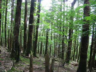大きな倒木 後は寒峰から落合峠への山稜 牛の背 天狗塚山頂から三嶺、剣山 天狗塚 池は干上がっていた 樹林帯
