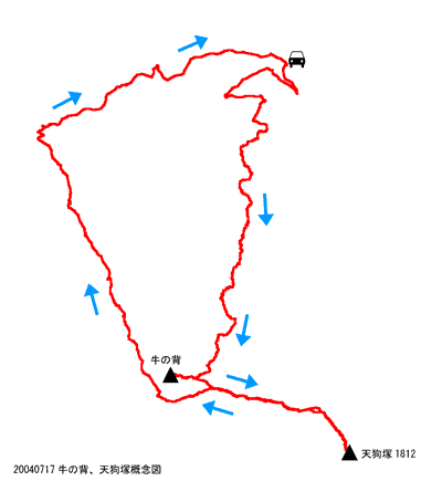 HOME > 山行記録 >牛ノ背(1757) 天狗塚(1812) 西山栗園経由 > 平成16年7月17日