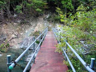 祖谷山林道へ入り 3.5kmキロポストで駐車、出発して、谷道川を鉄橋で渡り オコヤトコ集落跡へ。