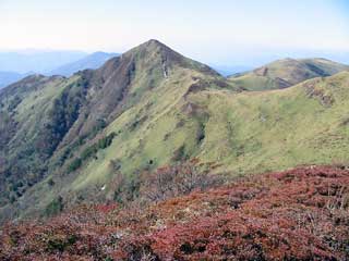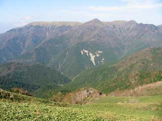 今年の4月に来たときには 笹こぎが多くて難儀したが 笹が刈られると 随分楽に歩け 少々あっけないぐらいに 通りすぎていくが その分 牛の背から天狗塚 西熊山 三嶺 迄の パノラマのような素晴らしい風景を じっくり 振り返りながら 進んだ。