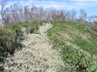 ●天狗峠から綱附森の間 笹深いところがありましたが 4月10日は苦労したが、笹の苅分けがされています。