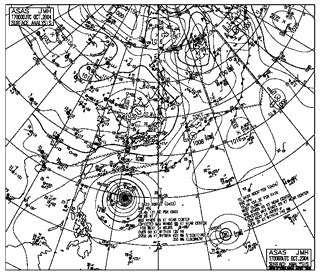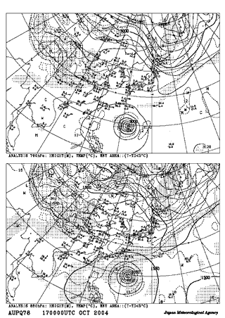 2004年10月17日 9:00地上天気図 2004年10月17日9:00高層天気図 700hpa 850hpa