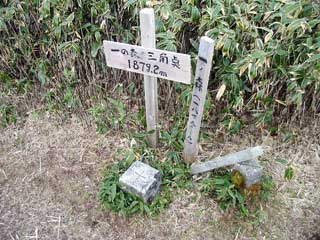 一の森の三角点付近の笹は刈り払われ 標識が設置されていた。