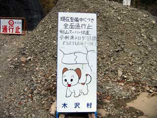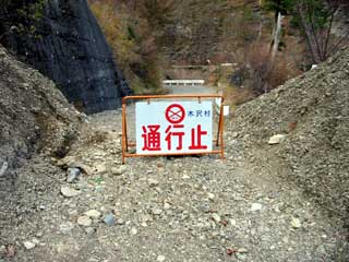 スーパー林道の木沢村区間の一九三号から 大槍戸区間は 台風災害で 路面は荒れ 通行止めになっている。