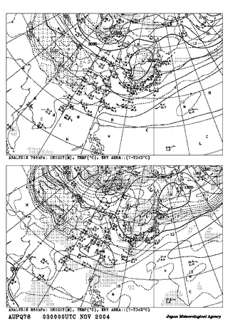 2004年11月3日 9:00地上天気図 2004年11月3日9:00高層天気図 700hpa 850hpa