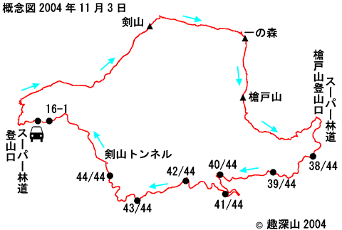 HOME > 山行記録 >剣山(1955) 一の森 (1879) 槍戸山 >平成16年11月3日