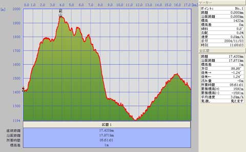 駐車地点 11:01--- スーパー林道剣山登山口 11:05 --- 剣山山頂 (12:30-12:48) --- 一の森 13:24 ---槍戸山 14:00 -- スーパー林道槍戸山登山口 14:47 -- おおぼら橋 15:25--剣山トンネル16:29--駐車地点16:50
