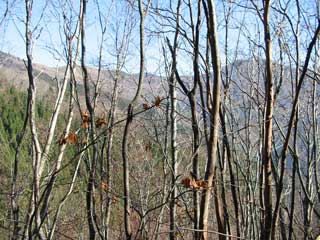 紅葉が落ちた木々の間から 対岸のサガリハゲなどの、いくつも特徴のある山容が 旧道を下る間、ほぼ ずっと見えているので 現在地の確定は比較的 楽に出来る。