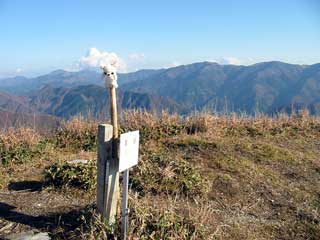 15:10寒峰山頂 「快晴 11.4度 西風2-3m心地よい風だ。剣山 次郎笈 三嶺 天狗塚 全て見える。紅葉は中腹以下 上は済んでしまった。」