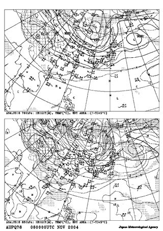 2004年11月6日 9:00地上天気図 2004年11月6日9:00高層天気図 700hpa 850hpa