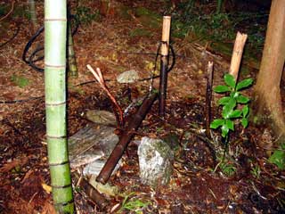 - 白井林道近道 と表示のある 黒笠山より「2.5km」地点からの下り道は 伐採の山仕事が 終わった今 あまり通られてないようでした。山仕事の飯場跡 に瀬戸物など散乱していたが 山仕事道自体 判然としないので 獣道を 使い 下りました。