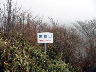10:57 黒笠山山頂 「9.3度 西よりの風 4-5m ガス 東 西 南の方面は見えない。かろうじて 志貴岳 高越山方面が見える。」