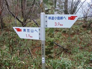 - 黒笠山山頂から 最初の標識「0.9km」は 1.2km位が正解だと思います。