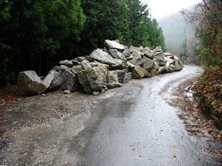 - 業務用の地元の方々は 車を崩壊箇所の前後に 配置して崩壊箇所を徒歩で通過しいるようです。