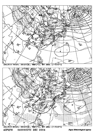 平成16年12月4日9時 地上天気図 平成16年12月4日9時 高層天気図 700hPa 850hPa