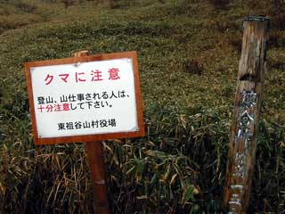 林道は路面が荒れていて、少し行くと土砂崩れで通行止めであった