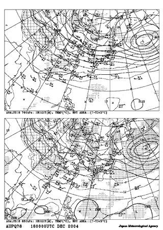平成16年12月18日9時 地上天気図 平成16年12月18日9時 高層天気図 700hPa 850hPa
