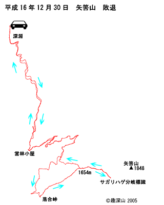 HOME > 山行記録 >積雪期> 矢筈山(1848)敗退の記>平成16年12月30日