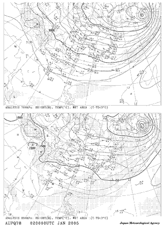 平成17年1月2日9時 地上天気図 平成17年1月2日9時 高層天気図 700hPa 850hPa
