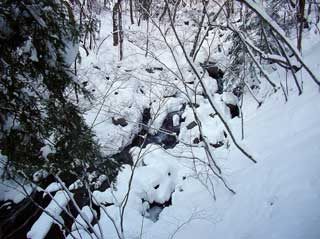左岸沿いに高捲きする。 徒渉地点は スノーブリッジとなるほど迄は 雪が多くなかった。