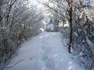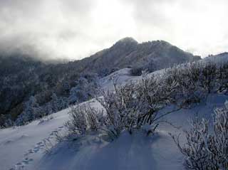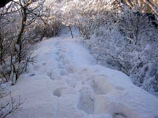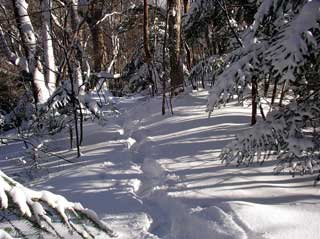 - この山域で 以前 激しい降雪中に登山した時 登りは当然 ラッセルでしたが 下りでも 登りのトレースは新雪で消え またラッセルでした。