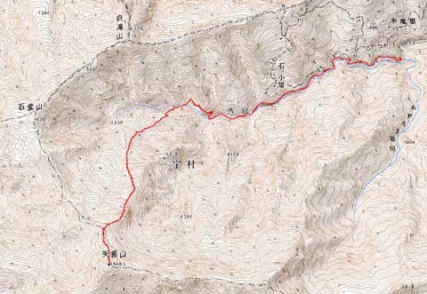 - 当初計画は 木地屋から石堂神社へ登り 白滝山 石堂山 矢筈山と周回する予定だった。