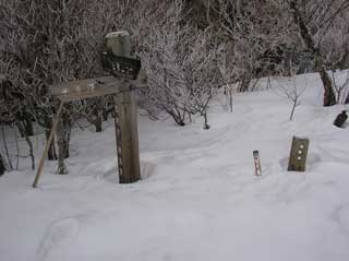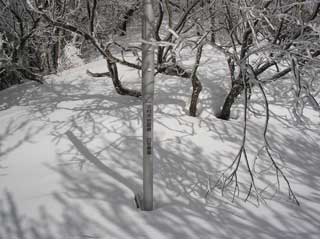 縦走路の 所々の雪量のチェックポイントは かなりの積雪となっていた。