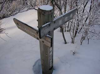 サガリハゲ分岐にかけての急登もクラストしていて一気に登れた。標識の雪の埋まり具合は大きい。