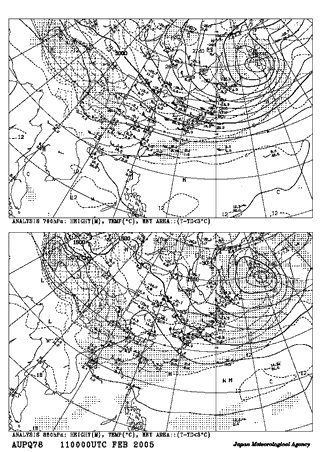 平成17年2月11日9時 地上天気図 平成17年2月11日9時 高層天気図 700hPa 850hPa